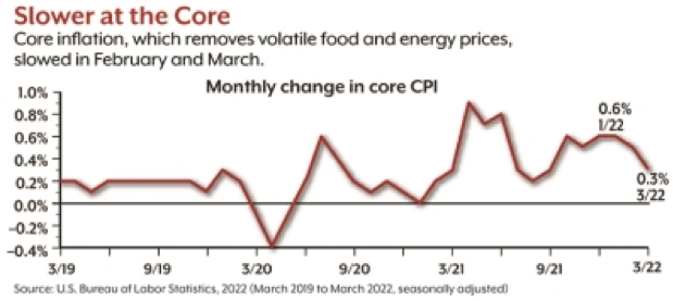 Core inflation, which strips out volatile food and energy prices, rose 6.5% year-over-year in March, the highest rate since 1982. However, the month-over-month increase from February to March was just 0.3%, the slowest pace in six months. Another positive sign was the price of used cars and trucks, which rose more than 35% over the last 12 months (a prime driver of general inflation) but dropped 3.8% in March.8