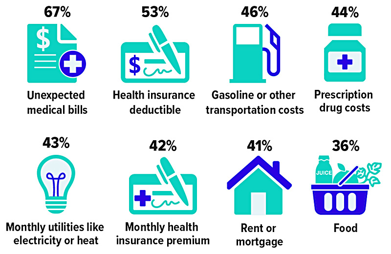 Percent of surveyed adults who say they are worried about being able to afford the following expenses