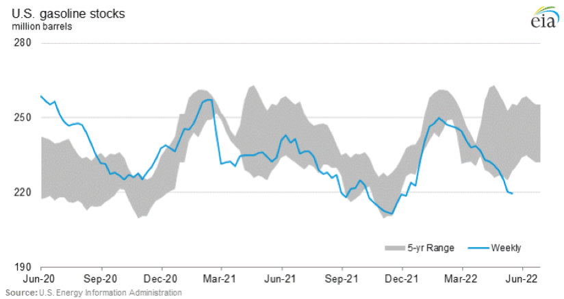 Figure 3. U.S. Gasoline Stocks, 2020–2022