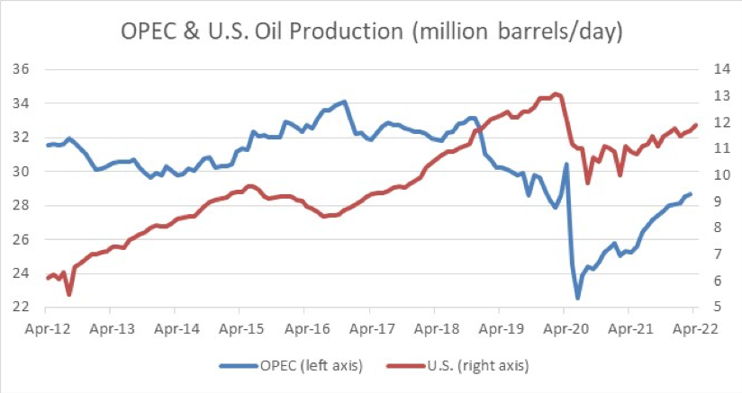 Figure 4. OPEC and U.S. Oil Production, 2012–2022